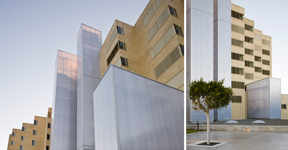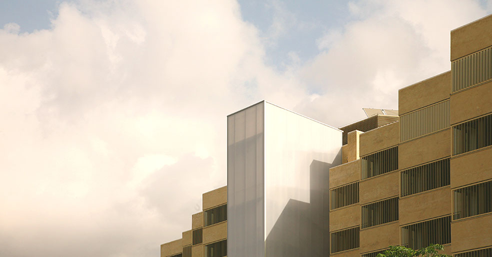 Esta transformación permite conseguir una imagen final del edificio más envuelta, como una piel que atenúe el denticulado, creando superficies donde la reflexión de la luz será nítida.