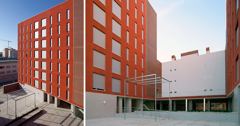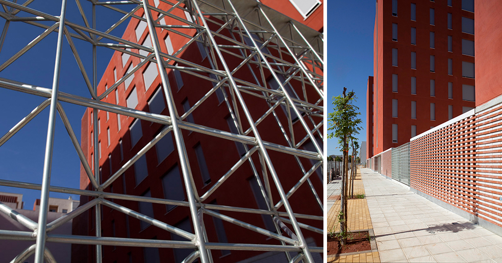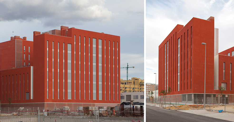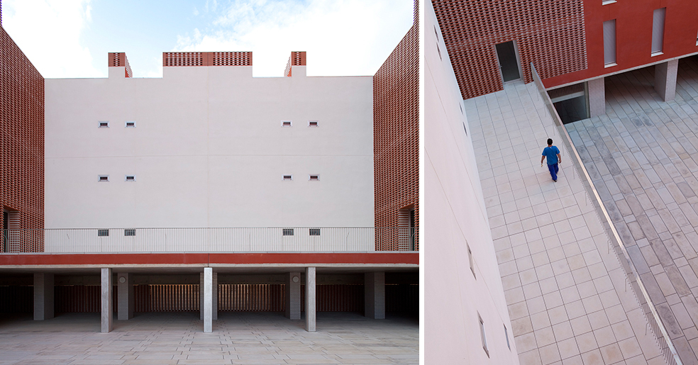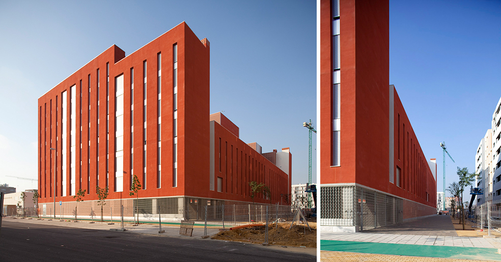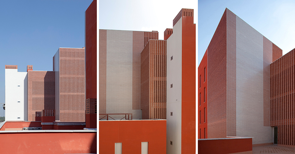 La construcción se aplica a reconocer la cualidad necesaria en este tipo de edificios donde son muy necesarios los conceptos de durabilidad, solidez y economía de medios, y utiliza elementos como revoco de color, como instrumento de separación e identificación, y el recurso a elementos de la arquitectura tradicional, las celosías, que nos hablan de la luz, la brisa y la capacidad de recuperar conceptos energéticos tan cercanos a la luz del sur, elementos pasivos que complementan a los activos de la técnica