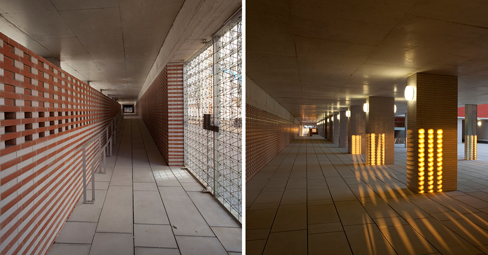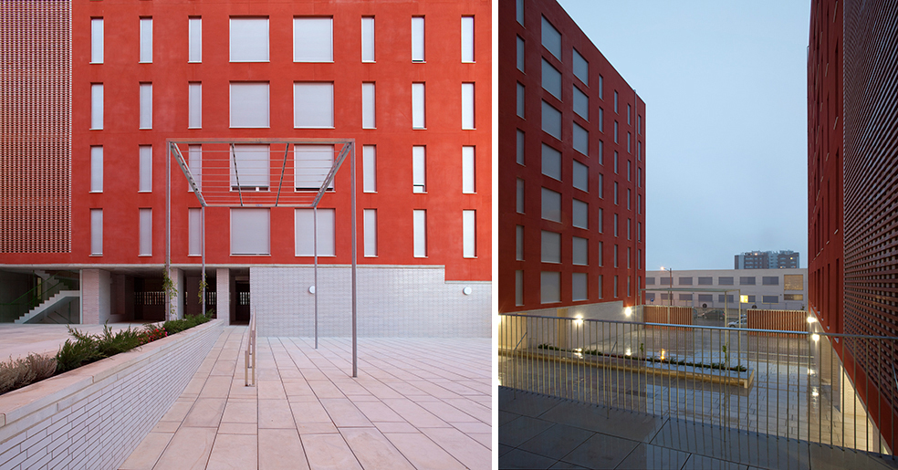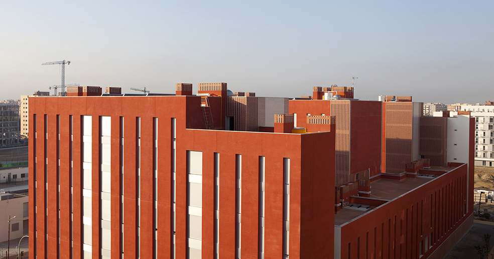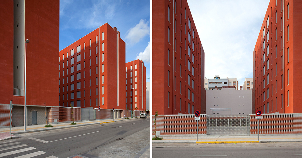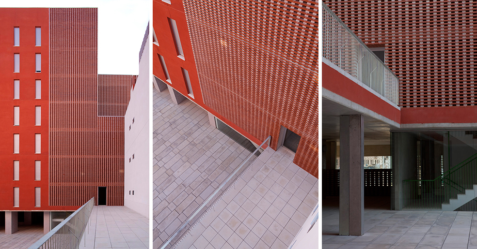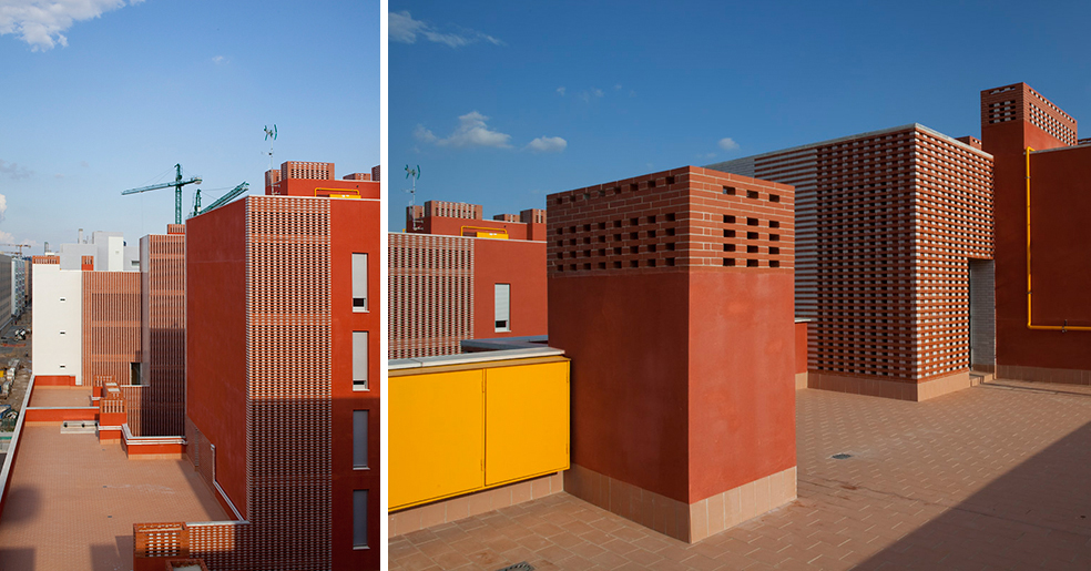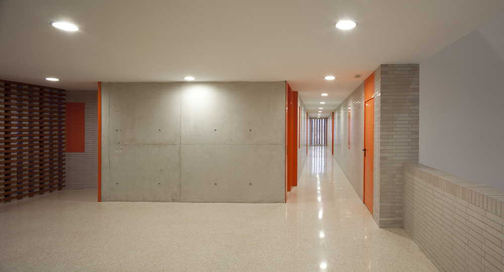 La construcción se aplica a reconocer la cualidad necesaria en este tipo de edificios donde son muy necesarios los conceptos de durabilidad, solidez y economía de medios, y utiliza elementos como revoco de color, como instrumento de separación e identificación, y el recurso a elementos de la arquitectura tradicional, las celosías, que nos hablan de la luz, la brisa y la capacidad de recuperar conceptos energéticos tan cercanos a la luz del sur, elementos pasivos que complementan a los activos de la técnica